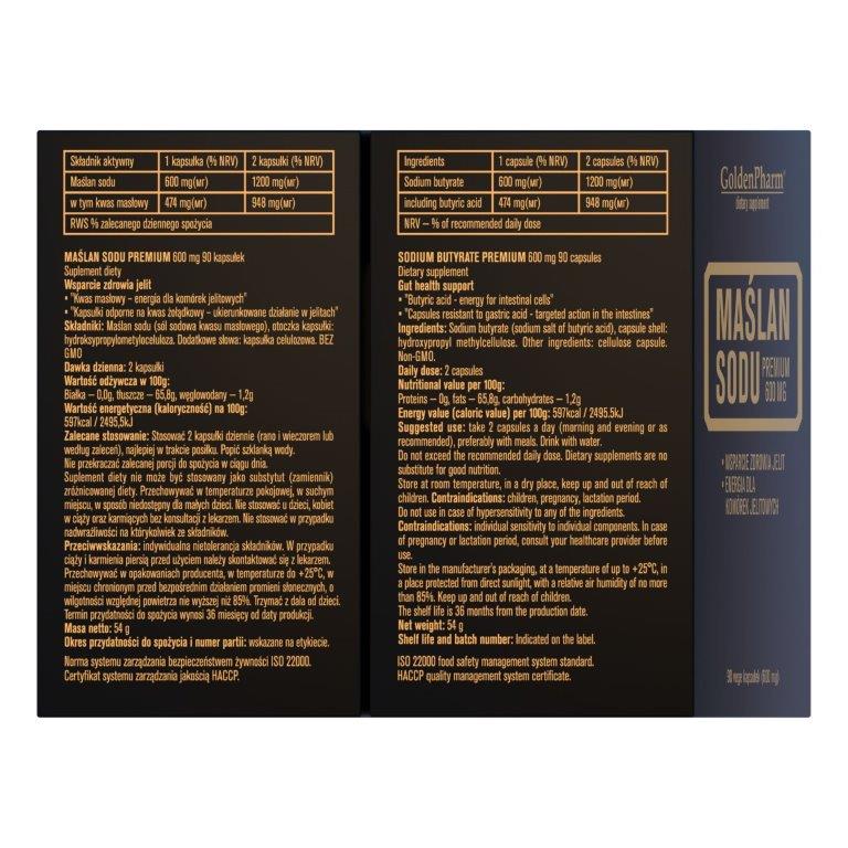 Maślan Sodu Premium 600 MG 90 vege kapsułek Golden Pharm